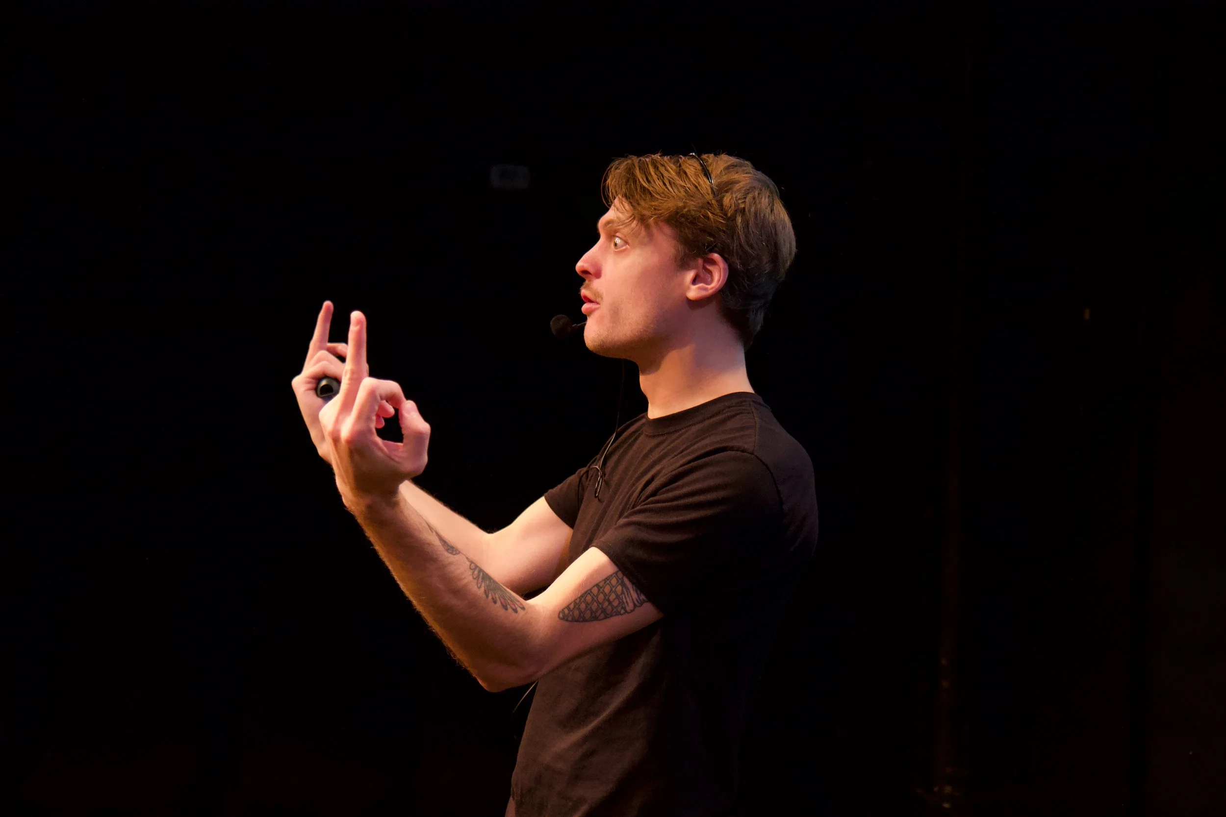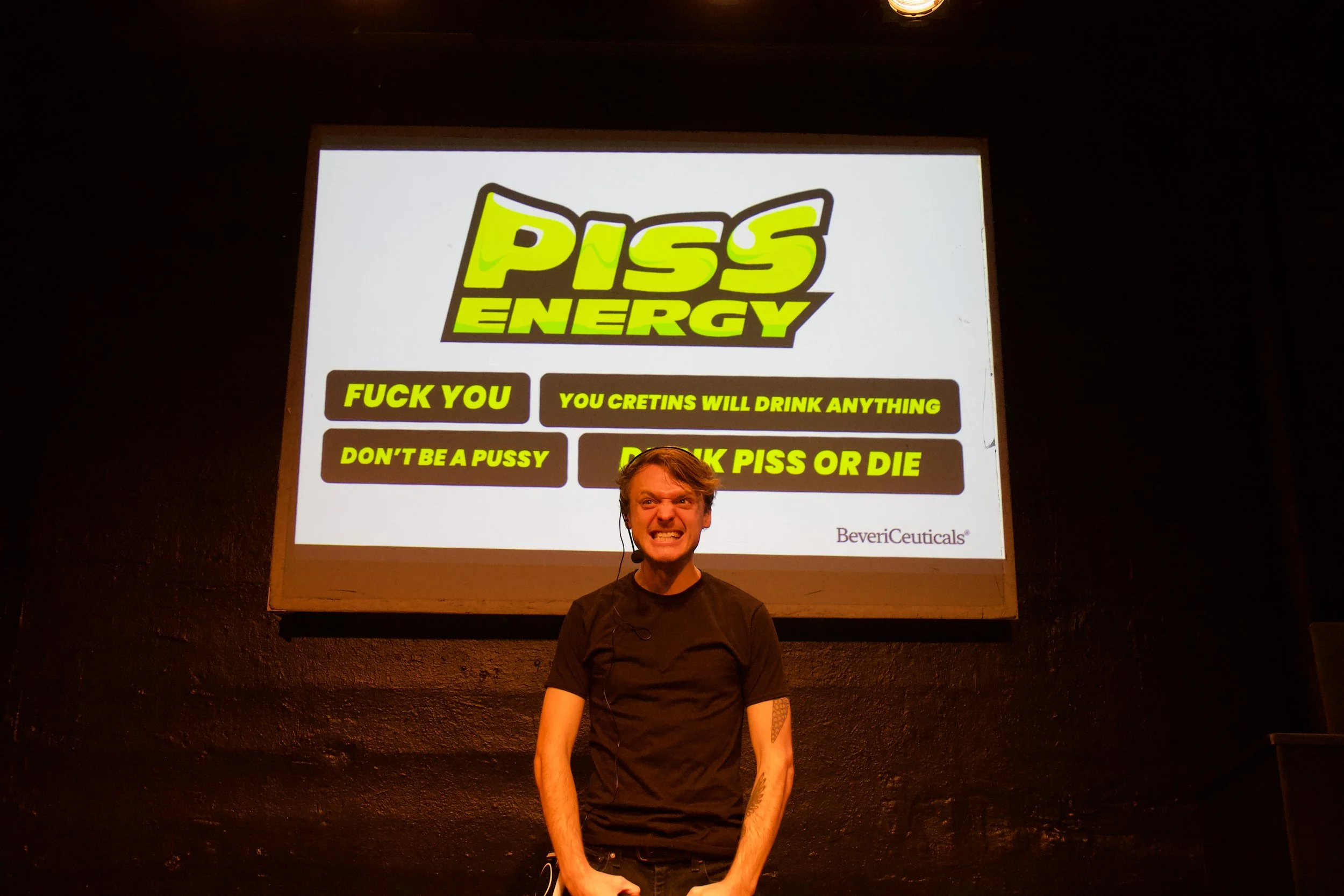 In the high-stakes world of start-ups, one bad meeting might feel like the end of the world – but imagine if your pitch flopped so bad that you triggered an unimaginable, nightmarish cataclysm? RICH BEYOND OUR WILDEST DREAMS explores that exact situation through the story of Colby Bates, the founder of a high-tech energy drink company. Told in the form of a floundering VC pitch, RBOWD is a three-part deconstruction of the futility of creative labor in Capitalism. This one-ish man show breaks the fifth, sixth, and seventh walls with audience participation, psychedelic visuals and yes, even puppetry, for a fluid, form-bending performance that’s never the same twice.